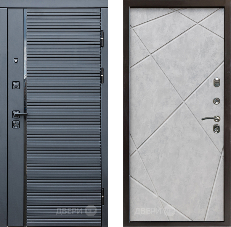Входная Дверь Престиж Черная Линия Лучи Бетон светлый 860x2050 мм