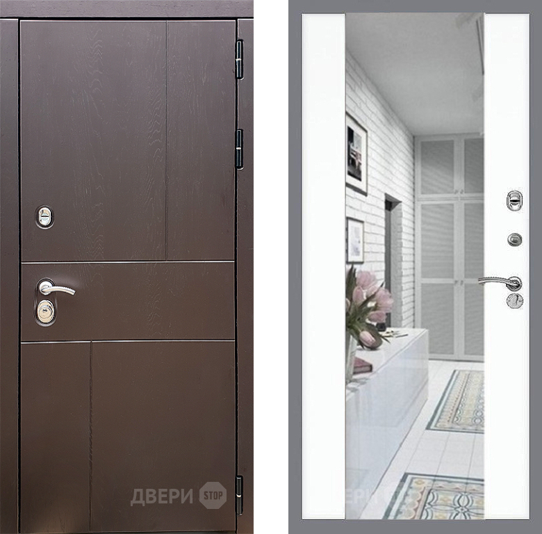 Входная Дверь Стоп УРБАН Зеркало СБ-16 Силк Сноу 860x2050 мм